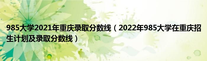 大家好,小高來為大家解答以上問題。985大學(xué)2021年重慶錄取分?jǐn)?shù)線,2022年985大學(xué)在重慶招生計(jì)劃及錄取分?jǐn)?shù)線很多人還不知道,現(xiàn)在讓我們一起來看看吧!