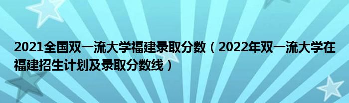 大家好,小高來為大家解答以上問題。2021全國雙一流大學(xué)福建錄取分?jǐn)?shù),2022年雙一流大學(xué)在福建招生計(jì)劃及錄取分?jǐn)?shù)線很多人還不知道,現(xiàn)在讓我們一起來看看吧!