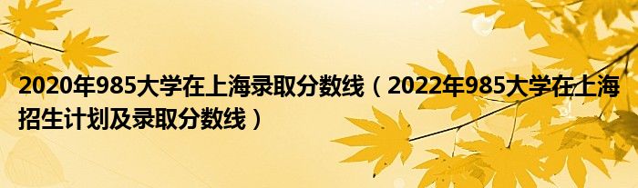 大家好,小高來(lái)為大家解答以上問(wèn)題。2020年985大學(xué)在上海錄取分?jǐn)?shù)線,2022年985大學(xué)在上海招生計(jì)劃及錄取分?jǐn)?shù)線很多人還不知道,現(xiàn)在讓我們一起來(lái)看看吧!