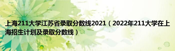 大家好,小高來為大家解答以上問題。上海211大學(xué)江蘇省錄取分?jǐn)?shù)線2021,2022年211大學(xué)在上海招生計劃及錄取分?jǐn)?shù)線很多人還不知道,現(xiàn)在讓我們一起來看看吧!