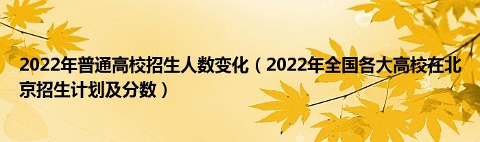 大家好,小高來為大家解答以上問題。2022年普通高校招生人數(shù)變化,2022年全國各大高校在北京招生計(jì)劃及分?jǐn)?shù)很多人還不知道,現(xiàn)在讓我們一起來看看吧!