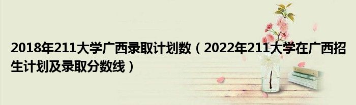 大家好,小高來為大家解答以上問題。2018年211大學廣西錄取計劃數(shù),2022年211大學在廣西招生計劃及錄取分數(shù)線很多人還不知道,現(xiàn)在讓我們一起來看看吧!