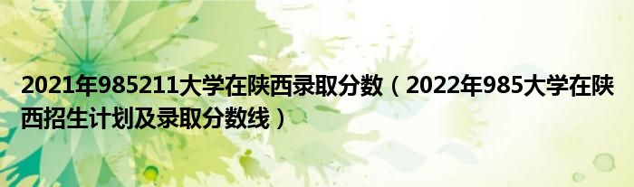 大家好,小高來為大家解答以上問題。2021年985211大學(xué)在陜西錄取分?jǐn)?shù),2022年985大學(xué)在陜西招生計(jì)劃及錄取分?jǐn)?shù)線很多人還不知道,現(xiàn)在讓我們一起來看看吧!