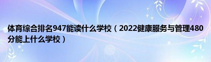大家好,小高來(lái)為大家解答以上問(wèn)題。體育綜合排名947能讀什么學(xué)校,2022健康服務(wù)與管理480分能上什么學(xué)校很多人還不知道,現(xiàn)在讓我們一起來(lái)看看吧!