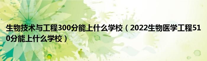 大家好,小高來(lái)為大家解答以上問(wèn)題。生物技術(shù)與工程300分能上什么學(xué)校,2022生物醫(yī)學(xué)工程510分能上什么學(xué)校很多人還不知道,現(xiàn)在讓我們一起來(lái)看看吧!