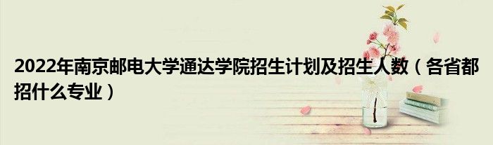 大家好,小高來(lái)為大家解答以上問(wèn)題。2022年南京郵電大學(xué)通達(dá)學(xué)院招生計(jì)劃及招生人數(shù),各省都招什么專業(yè)很多人還不知道,現(xiàn)在讓我們一起來(lái)看看吧!