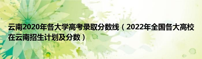大家好,小高來為大家解答以上問題。云南2020年各大學高考錄取分數(shù)線,2022年全國各大高校在云南招生計劃及分數(shù)很多人還不知道,現(xiàn)在讓我們一起來看看吧!