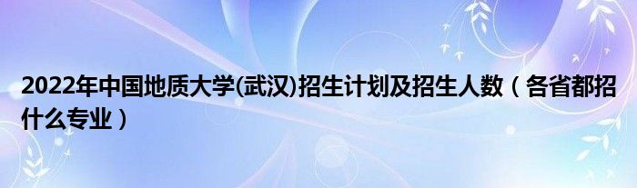 大家好,小高來為大家解答以上問題。2022年中國地質(zhì)大學(xué)(武漢)招生計劃及招生人數(shù),各省都招什么專業(yè)很多人還不知道,現(xiàn)在讓我們一起來看看吧!
