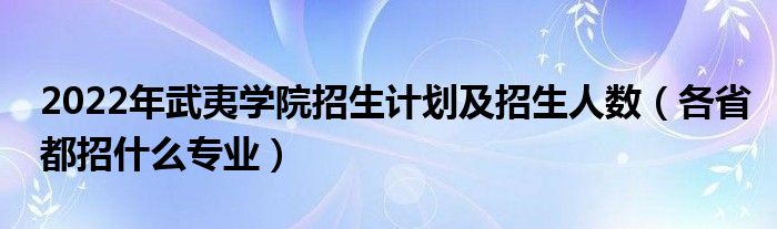 大家好,小高來(lái)為大家解答以上問(wèn)題。2022年武夷學(xué)院招生計(jì)劃及招生人數(shù),各省都招什么專業(yè)很多人還不知道,現(xiàn)在讓我們一起來(lái)看看吧!
