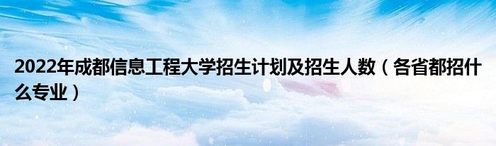 大家好,小高來(lái)為大家解答以上問(wèn)題。2022年成都信息工程大學(xué)招生計(jì)劃及招生人數(shù),各省都招什么專業(yè)很多人還不知道,現(xiàn)在讓我們一起來(lái)看看吧!
