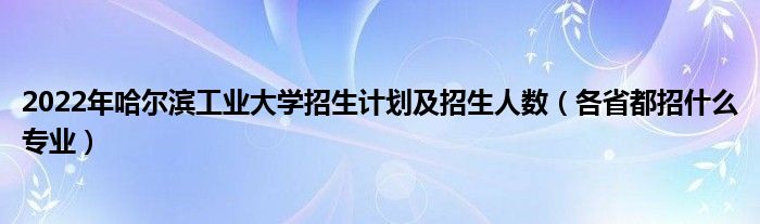 大家好,小高來(lái)為大家解答以上問(wèn)題。2022年哈爾濱工業(yè)大學(xué)招生計(jì)劃及招生人數(shù),各省都招什么專業(yè)很多人還不知道,現(xiàn)在讓我們一起來(lái)看看吧!
