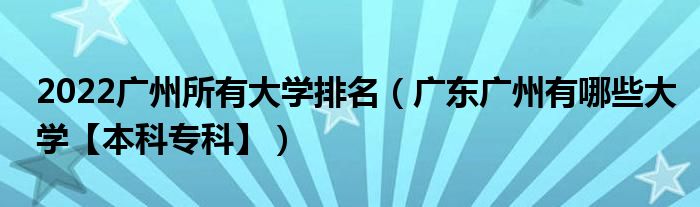 大家好,小高來(lái)為大家解答以上問(wèn)題。2022廣州所有大學(xué)排名,廣東廣州有哪些大學(xué)【本科??啤亢芏嗳诉€不知道,現(xiàn)在讓我們一起來(lái)看看吧!