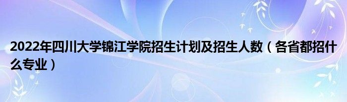 大家好,小高來(lái)為大家解答以上問(wèn)題。2022年四川大學(xué)錦江學(xué)院招生計(jì)劃及招生人數(shù),各省都招什么專業(yè)很多人還不知道,現(xiàn)在讓我們一起來(lái)看看吧!