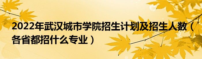 大家好,小高來為大家解答以上問題。2022年武漢城市學(xué)院招生計(jì)劃及招生人數(shù),各省都招什么專業(yè)很多人還不知道,現(xiàn)在讓我們一起來看看吧!