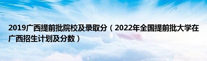 大家好,小高來(lái)為大家解答以上問(wèn)題。2019廣西提前批院校及錄取分,2022年全國(guó)提前批大學(xué)在廣西招生計(jì)劃及分?jǐn)?shù)很多人還不知道,現(xiàn)在讓我們一起來(lái)看看吧!