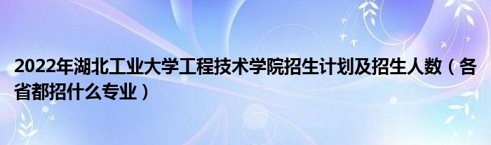 大家好,小高來為大家解答以上問題。2022年湖北工業(yè)大學(xué)工程技術(shù)學(xué)院招生計(jì)劃及招生人數(shù),各省都招什么專業(yè)很多人還不知道,現(xiàn)在讓我們一起來看看吧!