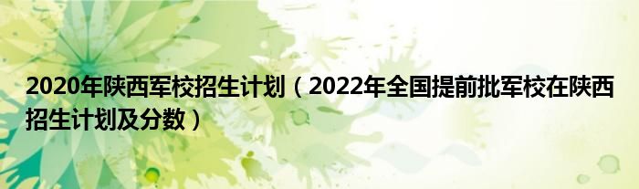 大家好,小高來為大家解答以上問題。2020年陜西軍校招生計劃,2022年全國提前批軍校在陜西招生計劃及分數很多人還不知道,現在讓我們一起來看看吧!