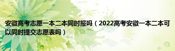 大家好,小高來為大家解答以上問題。安徽高考志愿一本二本同時(shí)報(bào)嗎,2022高考安徽一本二本可以同時(shí)提交志愿表嗎很多人還不知道,現(xiàn)在讓我們一起來看看吧!