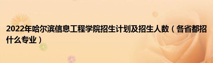 大家好,小高來為大家解答以上問題。2022年哈爾濱信息工程學(xué)院招生計劃及招生人數(shù),各省都招什么專業(yè)很多人還不知道,現(xiàn)在讓我們一起來看看吧!