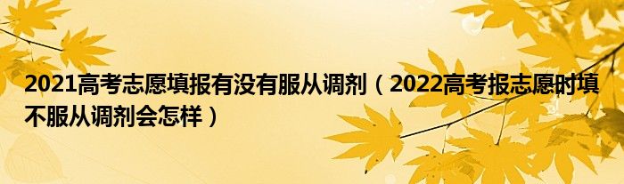 大家好,小高來為大家解答以上問題。2021高考志愿填報有沒有服從調(diào)劑,2022高考報志愿時填不服從調(diào)劑會怎樣很多人還不知道,現(xiàn)在讓我們一起來看看吧!