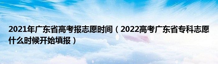 大家好,小高來(lái)為大家解答以上問(wèn)題。2021年廣東省高考報(bào)志愿時(shí)間,2022高考廣東省??浦驹甘裁磿r(shí)候開(kāi)始填報(bào)很多人還不知道,現(xiàn)在讓我們一起來(lái)看看吧!