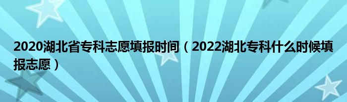 大家好,小高來為大家解答以上問題。2020湖北省??浦驹柑顖?bào)時(shí)間,2022湖北??剖裁磿r(shí)候填報(bào)志愿很多人還不知道,現(xiàn)在讓我們一起來看看吧!