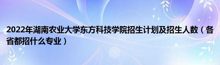 大家好,小高來(lái)為大家解答以上問(wèn)題。2022年湖南農(nóng)業(yè)大學(xué)東方科技學(xué)院招生計(jì)劃及招生人數(shù),各省都招什么專(zhuān)業(yè)很多人還不知道,現(xiàn)在讓我們一起來(lái)看看吧!