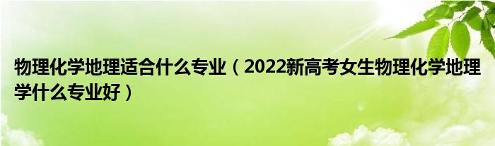 大家好,小高來為大家解答以上問題。物理化學(xué)地理適合什么專業(yè),2022新高考女生物理化學(xué)地理學(xué)什么專業(yè)好很多人還不知道,現(xiàn)在讓我們一起來看看吧!