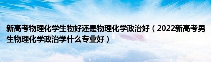 大家好,小高來為大家解答以上問題。新高考物理化學(xué)生物好還是物理化學(xué)政治好,2022新高考男生物理化學(xué)政治學(xué)什么專業(yè)好很多人還不知道,現(xiàn)在讓我們一起來看看吧!