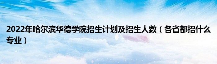 大家好,小高來為大家解答以上問題。2022年哈爾濱華德學(xué)院招生計劃及招生人數(shù),各省都招什么專業(yè)很多人還不知道,現(xiàn)在讓我們一起來看看吧!