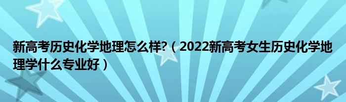 大家好,小高來為大家解答以上問題。新高考?xì)v史化學(xué)地理怎么樣?,2022新高考女生歷史化學(xué)地理學(xué)什么專業(yè)好很多人還不知道,現(xiàn)在讓我們一起來看看吧!