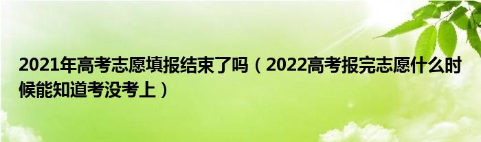 大家好,小高來為大家解答以上問題。2021年高考志愿填報(bào)結(jié)束了嗎,2022高考報(bào)完志愿什么時(shí)候能知道考沒考上很多人還不知道,現(xiàn)在讓我們一起來看看吧!