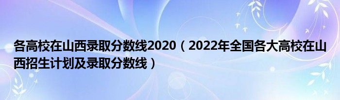 大家好,小高來為大家解答以上問題。各高校在山西錄取分?jǐn)?shù)線2020,2022年全國各大高校在山西招生計劃及錄取分?jǐn)?shù)線很多人還不知道,現(xiàn)在讓我們一起來看看吧!