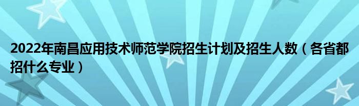 大家好,小高來為大家解答以上問題。2022年南昌應(yīng)用技術(shù)師范學(xué)院招生計劃及招生人數(shù),各省都招什么專業(yè)很多人還不知道,現(xiàn)在讓我們一起來看看吧!