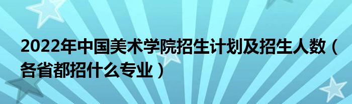 大家好,小高來(lái)為大家解答以上問(wèn)題。2022年中國(guó)美術(shù)學(xué)院招生計(jì)劃及招生人數(shù),各省都招什么專(zhuān)業(yè)很多人還不知道,現(xiàn)在讓我們一起來(lái)看看吧!