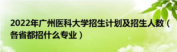 大家好,小高來為大家解答以上問題。2022年廣州醫(yī)科大學招生計劃及招生人數(shù),各省都招什么專業(yè)很多人還不知道,現(xiàn)在讓我們一起來看看吧!