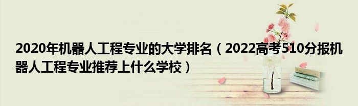 大家好,小高來為大家解答以上問題。2020年機器人工程專業(yè)的大學排名,2022高考510分報機器人工程專業(yè)推薦上什么學校很多人還不知道,現(xiàn)在讓我們一起來看看吧!