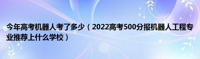 大家好,小高來為大家解答以上問題。今年高考機(jī)器人考了多少,2022高考500分報機(jī)器人工程專業(yè)推薦上什么學(xué)校很多人還不知道,現(xiàn)在讓我們一起來看看吧!