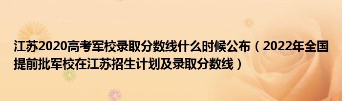 大家好,小高來(lái)為大家解答以上問(wèn)題。江蘇2020高考軍校錄取分?jǐn)?shù)線什么時(shí)候公布,2022年全國(guó)提前批軍校在江蘇招生計(jì)劃及錄取分?jǐn)?shù)線很多人還不知道,現(xiàn)在讓我們一起來(lái)看看吧!