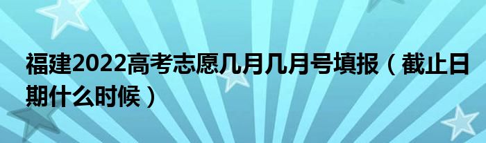 大家好,小高來為大家解答以上問題。福建2022高考志愿幾月幾月號(hào)填報(bào),截止日期什么時(shí)候很多人還不知道,現(xiàn)在讓我們一起來看看吧!
