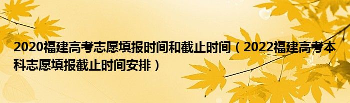 大家好,小高來為大家解答以上問題。2020福建高考志愿填報時間和截止時間,2022福建高考本科志愿填報截止時間安排很多人還不知道,現(xiàn)在讓我們一起來看看吧!