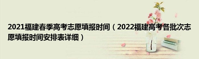 大家好,小高來(lái)為大家解答以上問(wèn)題。2021福建春季高考志愿填報(bào)時(shí)間,2022福建高考各批次志愿填報(bào)時(shí)間安排表詳細(xì)很多人還不知道,現(xiàn)在讓我們一起來(lái)看看吧!