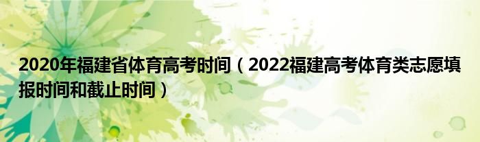 大家好,小高來為大家解答以上問題。2020年福建省體育高考時間,2022福建高考體育類志愿填報時間和截止時間很多人還不知道,現(xiàn)在讓我們一起來看看吧!