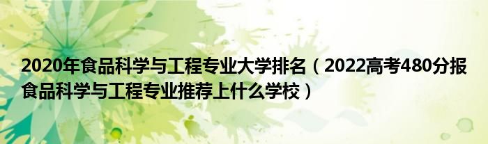 大家好,小高來為大家解答以上問題。2020年食品科學(xué)與工程專業(yè)大學(xué)排名,2022高考480分報食品科學(xué)與工程專業(yè)推薦上什么學(xué)校很多人還不知道,現(xiàn)在讓我們一起來看看吧!