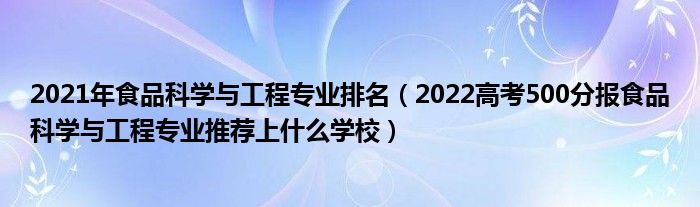 大家好,小高來為大家解答以上問題。2021年食品科學(xué)與工程專業(yè)排名,2022高考500分報(bào)食品科學(xué)與工程專業(yè)推薦上什么學(xué)校很多人還不知道,現(xiàn)在讓我們一起來看看吧!