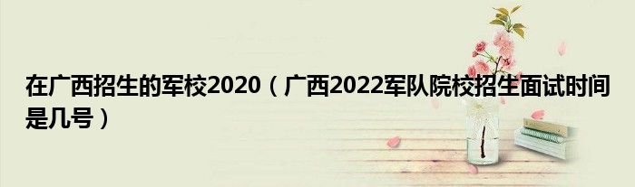 大家好,小高來為大家解答以上問題。在廣西招生的軍校2020,廣西2022軍隊(duì)院校招生面試時(shí)間是幾號很多人還不知道,現(xiàn)在讓我們一起來看看吧!