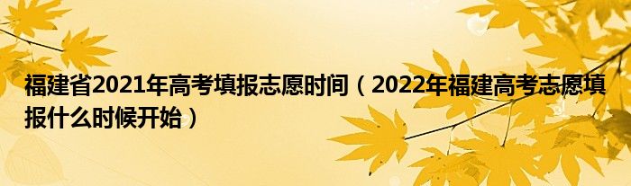 大家好,小高來為大家解答以上問題。福建省2021年高考填報志愿時間,2022年福建高考志愿填報什么時候開始很多人還不知道,現(xiàn)在讓我們一起來看看吧!