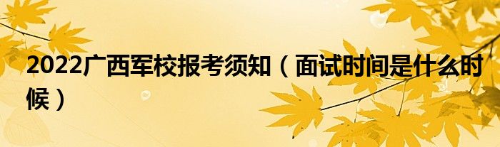 大家好,小高來為大家解答以上問題。2022廣西軍校報考須知,面試時間是什么時候很多人還不知道,現(xiàn)在讓我們一起來看看吧!