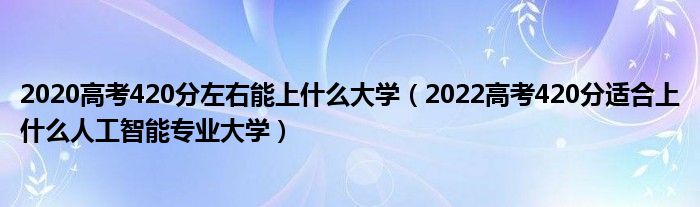 大家好,小高來(lái)為大家解答以上問(wèn)題。2020高考420分左右能上什么大學(xué),2022高考420分適合上什么人工智能專(zhuān)業(yè)大學(xué)很多人還不知道,現(xiàn)在讓我們一起來(lái)看看吧!