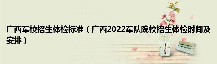 大家好,小高來為大家解答以上問題。廣西軍校招生體檢標準,廣西2022軍隊院校招生體檢時間及安排很多人還不知道,現(xiàn)在讓我們一起來看看吧!
